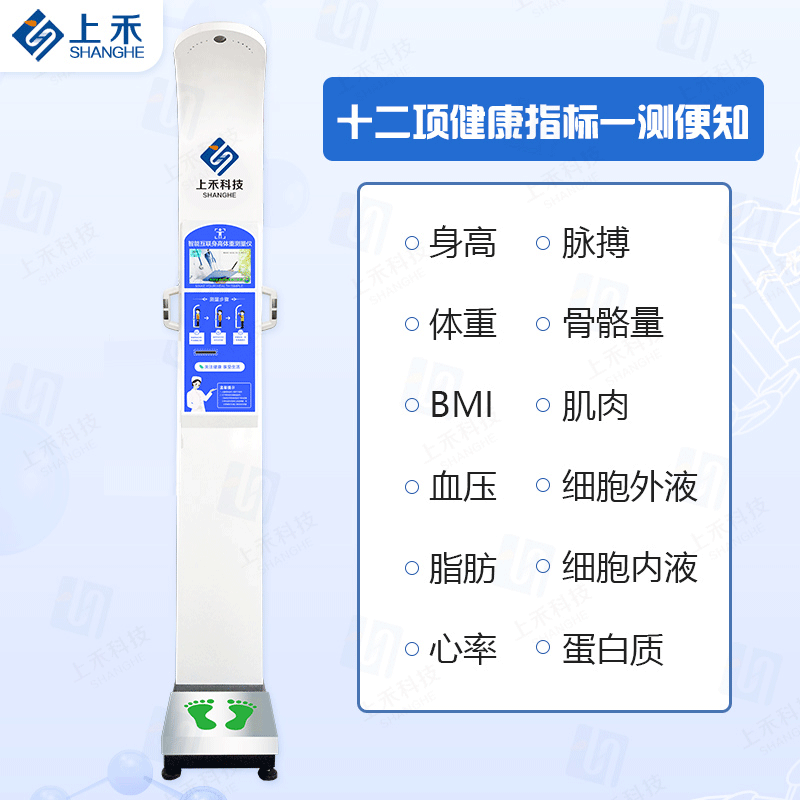 上禾科技研發(fā)的一款可以測量測量身高,體重,體型指數,脂肪率,脂肪量,基礎代謝率的一體機。其精準的測量結果和大氣的外觀(guān),深受藥店、健身房、大型商場(chǎng)等的喜愛(ài),那么它的為什么這么受歡迎呢?下面小禾為你解答。