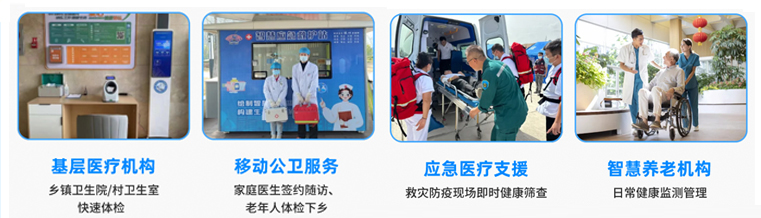 SH-203便攜式健康體檢一體機廣泛應用于基層醫療、家庭簽約醫生、智能養老、公共衛生、智慧藥房、智慧地產(chǎn)、企業(yè)單位等。