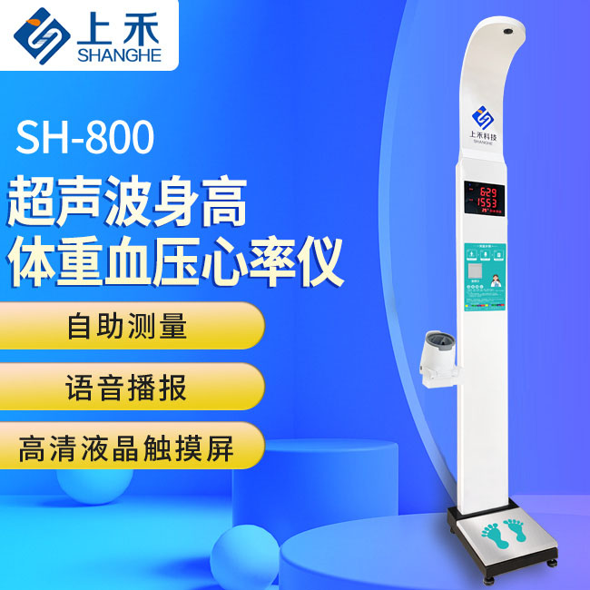 傳統身高體重秤僅支持身高、體重測量,上禾SH-800智能身高體重血壓心率儀顛覆傳統,一機測量身高、體重、BMI、血壓、心率等數據,隨站隨測、自動(dòng)化測量、語(yǔ)音播報,是醫院、體檢中心、部隊、學(xué)校、健康小屋的理想選擇。